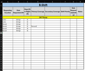 I am trying to create a formula for conditional formatting to check that if two individuals have the same day off and neither have coverage, then the rows for those two highlight red. If one does fin...