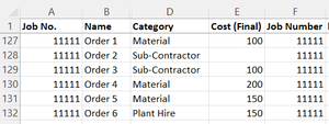 I'm setting up a spreadsheet to track costs against projects. Each individual order is listed in the Cost Data tab where it is assigned to a category and the cost listed. In the Costs & Profit tab th...