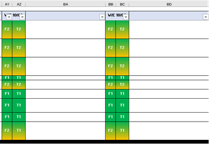 mtarler Thank you for this. I have applied the formula to all relevant columns with the correct colour coding. It seems to work for most of the cells, however in the sample data attached, if I change a cell to F1 and T1 this should be green together, however one cell shows (F1) as green and the other cell as red (T1).