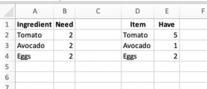 I have a workbook with multiple tabs of lists/things that are required to complete a task. I have a separate tab that lists the inventory of everything that I have (and I have also reflected the inve...