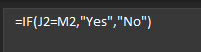 I am trying to format the cells in a row between columns F-T based on the result of "Yes" from column U containing the IF formula =IF(J2=M2,"Yes","No"). When I apply the conditional form...