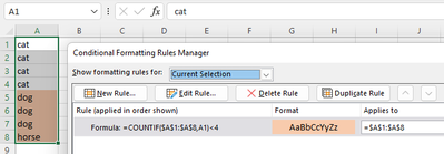I'm tying to create a rule that will highlight cells that do not appear at least four times. example would be in one column: