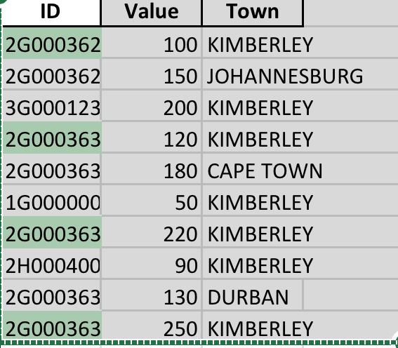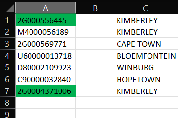 Only the IDs in Column A that start with 2G and have "KIMBERLEY" in Column C should be highlighted.Question: