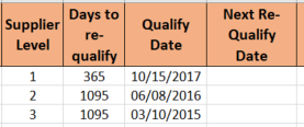 How do i create a conditional formatting based on the table below for next re-qualification?
