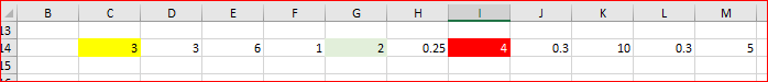 =C14=AGGREGATE(15,6,1/ISODD(COLUMN($C14:$M14))*$C14:$M14,3))*ISODD(COLUMN(C14))