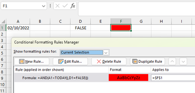 Hi All, I have one cell with date and another one with the criteria False or True. I'd like to colour a third cell based on past dates and the False criteria. I have tried many ways but cant figure out the correct formula.
