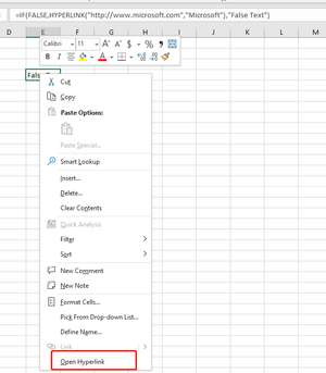 And if I put a text, for example, "A", in the [value_if_false] field, the cell will have a hyperlink link to "A". As the following pic shows: