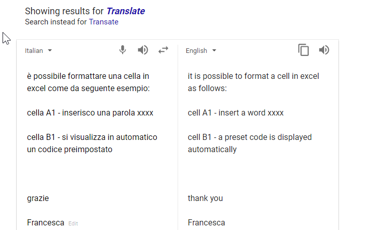 è possibile formattare una cella in excel come da seguente esempio: