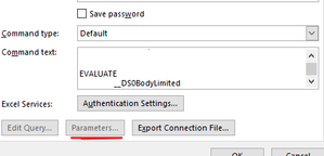 Hi there, I'm trying to connect to a Power BI dataset from Excel and to pass a parameter from a cell or rangename. When I go to the connection settings, the parameter box is greyed out. Is there a w...