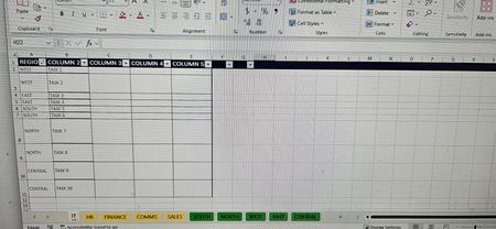 Sub CopyTasksToRegionSheets() Dim focusAreas As Variant Dim regions As Variant Dim ws As Worksheet Dim regionSheet As Worksheet Dim lastRow As Long Dim targetRow As Long Dim region As String Dim i As Long Dim focusArea As Variant ' Define the focus area sheets and region sheets focusAreas = Array("IT", "HR", "FINANCE", "COMMS", "SALES") regions = Array("SOUTH", "NORTH", "WEST", "EAST", "CENTRAL") ' Clear the region sheets before copying new data For Each region In regions Set regionSheet = ThisWorkbook.Sheets(region) ' Assuming you want to clear all existing data except the header row regionSheet.Rows("2:" & regionSheet.Rows.Count).ClearContents Next region ' Loop through each focus area sheet For Each focusArea In focusAreas Set ws = ThisWorkbook.Sheets(focusArea) lastRow = ws.Cells(ws.Rows.Count, "A").End(xlUp).Row ' Loop through each row in the focus area sheet For i = 2 To lastRow ' Assuming the first row is the header region = ws.Cells(i, "B").Value ' Assuming region is in column B ' Copy the row to the corresponding region sheet Set regionSheet = ThisWorkbook.Sheets(region) targetRow = regionSheet.Cells(regionSheet.Rows.Count, "A").End(xlUp).Row + 1 ws.Rows(i).Copy Destination:=regionSheet.Rows(targetRow) Next i Next focusArea MsgBox "Tasks have been successfully copied to their respective region sheets!" End SubThe error "For Each control variable must be Variant or Object" indicates that the control variable in your For Each loop must be declared as a Variant or Object. In the provided code, the control variable focusArea needs to be declared correctly.