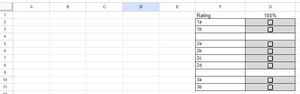 This formula uses nested IF statements and the AND, OR, and COUNTIF functions to check the checkbox values and calculate the rating percentage accordingly.