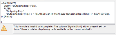 I am looking for a DAX solution to "Count PCN if Outgoing Reps Time is between Sign In Start and Finish Time"