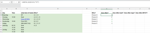 person, SORT(UNIQUE(TEXTSPLIT(TEXTJOIN(", ", 1, Table1[Who?]), , ", "))),