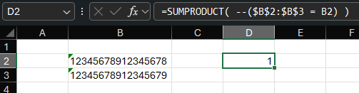 Internally COUNTIF converts text which looks like numbers into the numbers keeping first 15 digits