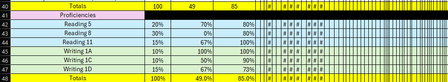 on another note you might consider transposing your data. Think about what IF you want to use the built in table filters because they only filter rows so does it make sense to look at a column and set a filter to refine your view. Presently I believe your columns are students so I don't think that would make much sense to filter the rows across all students based on 1 student's grade, but if you flip the table and the columns are classes then you might want to filter the rows (i.e. students) to see which students are presently failing or haven't submitted a report yet or are doing really well... just my 2 cents.