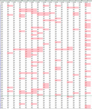The number of rows with at least one "Yes" is