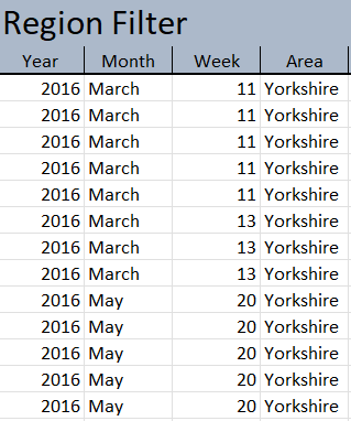 Hello, I have a table which I have filtered down by region (to only show Yorkshire depot box sales) which looks like so: Which I have then filtered to remove the duplicate values with UNIQUE(A...