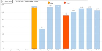For example, month of july, Total switch new dax shows that value 1166 comes from Profile units(refer page 1 in report) & November, Total switch new dax shows value 910 comes from Target.