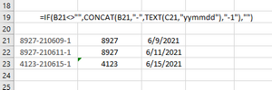 =IF([@[Truck '#]]<>"", [@[Truck '#]]&"-"&TEXT([@[SERVICE