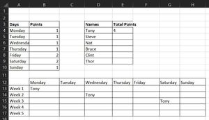 Hi! I want to create a point-calendar system for a schedule that I'm creating for my team. I'm new to excel, and my many google searches led me to be more confused. Here's what I'm trying to create:...