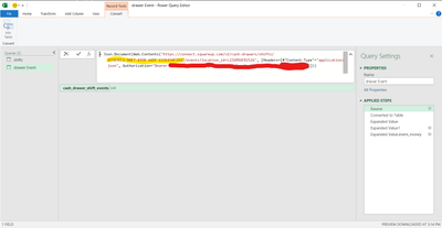 I am trying to query several Square API's to get cash drawer report data. The problem is that there are 2 seperate API's that must be called. The first returns the shift identifiers for a date or range of dates that then a second API must be called for each shift ID to get the data I'm looking for. The shift ID from the first query (first pic below) becomes part of the URL for the second query (highlighted in second pic).