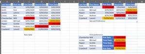 Creating a shortlist from conditional formatting or date range across multiple columns