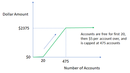 I want to create a simple chart. Example -- I want to chart the following data. I have a service that uses a freemium model. The first 20 accounts are free, but I will charge $5 per account for...
