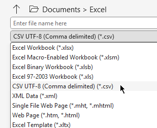 I've been trying to save a file on excel as a csv file, but whenever i click on save as, it does not give me an option on the type of file I want to save it as. How can i rectify this issues?