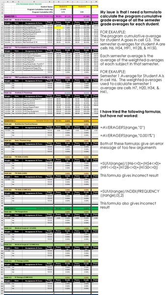 Or you can use column F and change the formatting to hide these values. I can suggest values of S1S (semester 1 summary) for row 6 and S1CS (semester 1 course summary) for rows 7, 20, 24, and 41.