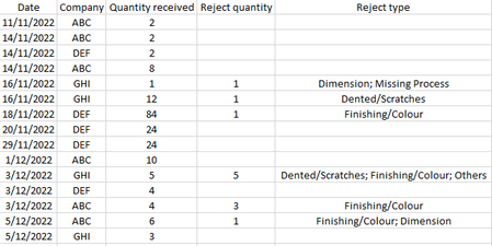 Hi all, I have a question on how to do analysis if there is multiple data in one cells (picture below in reject type column). I tried to separate in 2 column but when I insert pivot chart and pivot ...
