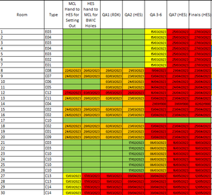 My end goal is to use this data and automatically produce a weekly summary to say "week beginning the 20/03/23, rooms ___ are due for completion at the stage QA3-6 and rooms ___ are due for com...
