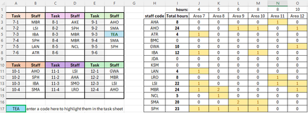 I have a shared spreadsheet where coordinators enter staff codes for particular tasks they would like them to do (it's not a timesheet, just a future planning tool). I have set up a data validation t...