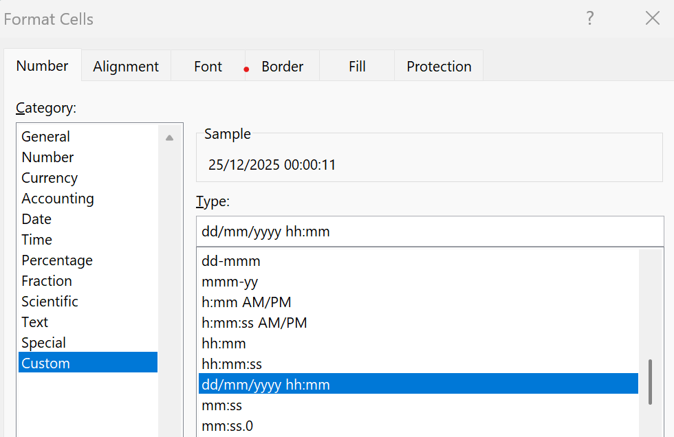 and format as dd/mm/yyyy hh:mm:ss