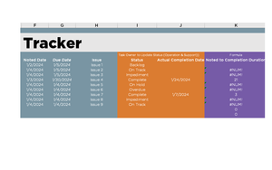 Hi- I'm trying to create a project tracker and count the duration it takes from noted date (column F; data starting at F5) to completion date (Column J; Data starting J5) that connects to a live ...