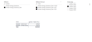 Forecast - Target Units_2-new copy = VAR Actuals = SELECTCOLUMNS ( ADDCOLUMNS ( SUMMARIZE ( DataInvoice, Calendar_[Month-Year], Points[DBName-Point_Id], "Act", SUM ( DataInvoice[Units] ) ), "ID", Calendar_[Month-Year] & "=" & Points[DBName-Point_Id] ), [ID] ) VAR FilterTargets = FILTER( 'Target Timeseries_1', NOT ( 'Target Timeseries_1'[ID] IN Actuals ) ) VAR Targets = CALCULATE( SUM( 'Target Timeseries_1'[Usage Per Day] ), FilterTargets ) RETURN Targets