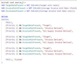 Hi, I have created a dax measure as below: VT_Targetunitrate_2 = SUMX ( Accruals, IF ( [Accrual cost source_2] = "Target", [Switch Cost] ) ) I also tried using calculate but i am not abl...