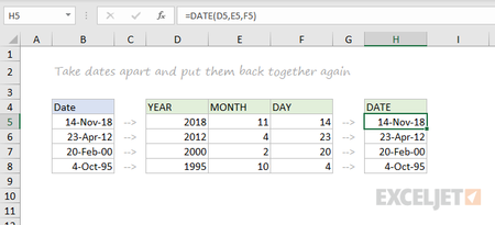 You can use the DAY, MONTH, and YEAR functions to disassemble any date into its raw components, and the DATE function to put things back together again.