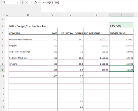 For example, enter the initial amount of £45,000 in R2, and the formula =E2-SUM(E4:E100) in K2.