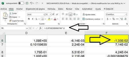 ReynosoOJ Well, you entered a calculation of -2,33 to the power of -5. Excel calculates and displays the result. Then you formatted the cell to show the scientific format. What would you expect to see otherwise?