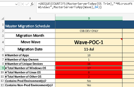 =IF(SUM(ISNUMBER(SEARCH("Microsoft Windows", MasterServerToApp[OS Trim]))*(MasterServerToApp[Wave]=B4))=0, 0, COUNTA(UNIQUE(FILTER(MasterServerToApp[OS Trim], ISNUMBER(SEARCH("Microsoft Windows", MasterServerToApp[OS Trim]))*(MasterServerToApp[Wave]=B4)))))
