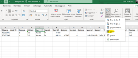 The simplest way to clear all filters it to click the Clear Filters button (Effacer). You can also add this button to the Quick Access Toolbar, so it's easier to find when needed.