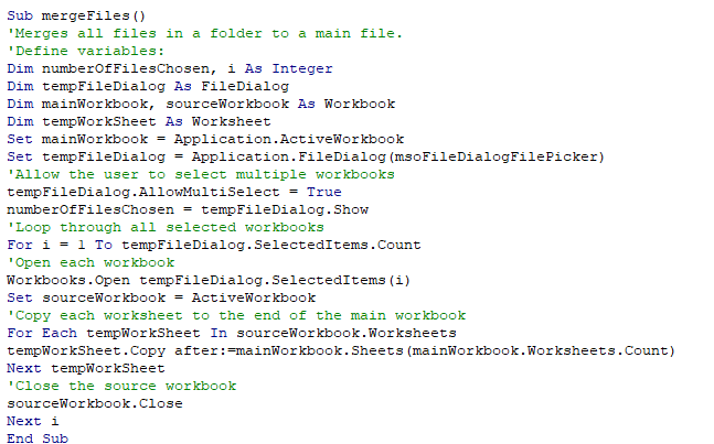 I then have a simple VBS which compiles all the individual worksheets together into one workbook.