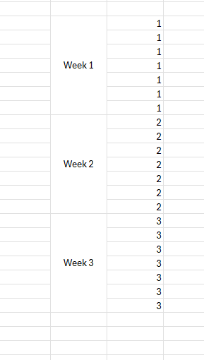Hello, I want to calculate the average number of 7 numbers that I tracked for each day of a week. In the next row there should be the average of the next 7 numbers of the next week. And I want th...