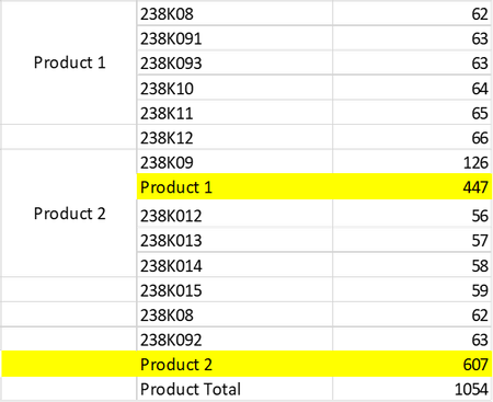 Since your dynamic array is based off the pivot table, I used a label filter to remove any id's containing product. Instead, I used the subtotal (as I noticed when I added additional rows to the source of the pivot table, obviously the values of product 1 & product 2, etc, would not update to reflect the new rows).