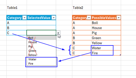 I'm trying to get the data validation (values from another table) dynamic, in a table and based on the value in another column. I manage to get all values from my other table in data validation us...