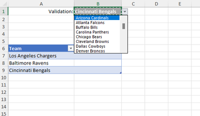 I imported the team list in Screenshot 1 from the web. Column 1 of that imported table is the starting point for the validation list.