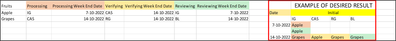 Hi everyone, I am trying to generate lists based on two criteria (date and initial) value on the table. Desired result will be color formatted as well based upon the criteria (processing, verifying and reviewing). Any help will be greatly appreciated.