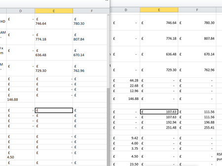 I think you may have spotted what is going on. Increasing the row height does indeed reveal the numbers. But it is not as simple as increasing the column width. Looking closer, it does not matter how wide the cell is, the currency sign (£) is always on a separate line to the value, when displayed in Edge.