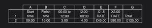 Hi all, I need some advice on how to solve this problem please: I’m trying to find a formula that will auto sum a works timesheet where on a Saturday the overtime rates are different from 00:00 (Fr...
