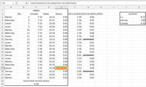 It is 0 the value of that cell. That cell has an if operation where it checks if it is Friday or not to do one operation or another. If I do the operations without that IF, what appears on the right, which is 0:00, appears, but if I put it in the if, #### appears. The numbers are as follows